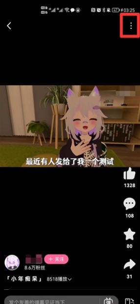 在哔哩哔哩竖屏播放中,点击右上角三点。