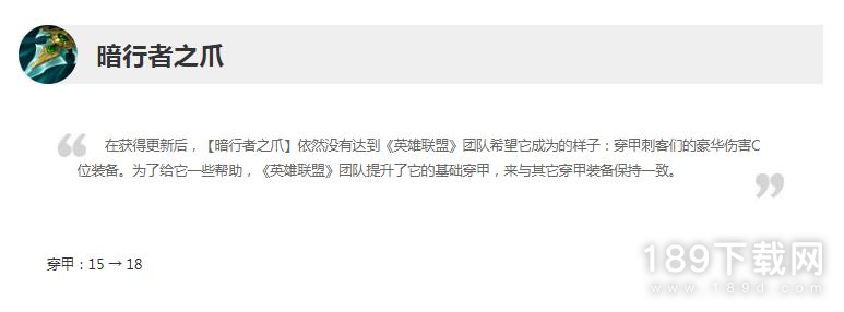 一个游戏中,最令人感到困扰的就是遇到LOL13.14版本正式服暗爪加强一览,这个问题在英雄联盟LOL游戏中也是一样,让许多玩家头疼。想要解决这个问题也不难,只要大家对游戏足够的了解,那么就可以轻松解决了,下面189 ...