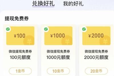 据了解,“微信支付有优惠"小程序日前上线了1000元、2000元微信提现免费券,分别需要10金币、20金币兑换。