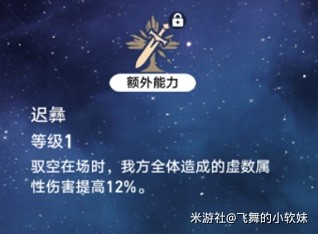 驭空的行迹有大量的增加虚数属性伤害,而且迟彝的效果还能提高全队造成的虚数属性伤害,这就意味着,与驭空搭的最佳主C角色还没出现,驭空最好搭配虚数属性的主C,而且这个角色,最好拥有额外回合或者追加攻击;