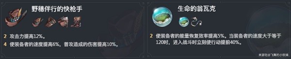 推荐快枪手四件套,用来提高速度与普攻伤害,可以搭配天赋使用,如果队友是瓦尔特或银狼这种让敌人有负面效果的角色,可以选择废土客这种虚数装备,位面饰品则是选择翁瓦克套装,来提升能量恢复效率;