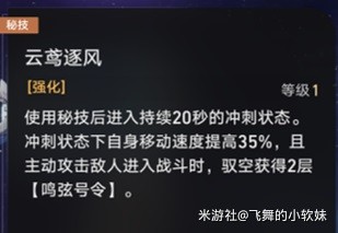 秘技可以让你在地图上跑很快,其实软妹觉得,这个很实用,因为有些传送点真的离目标很远,而且主动攻击敌人进入战斗时,会获得2层鸣弦号令,表示一开始进入战斗,就可以得到攻击力提升的效果。
