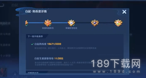 2、而且生涯徽章也跟英雄的熟练度和等级息息相关的,基本上对局战斗结束生涯徽章等级按照额外熟练度之和/100来算的。