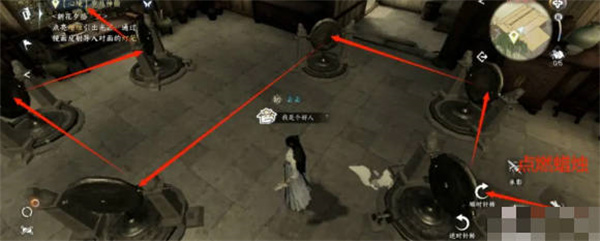 2:如图所示,转动铜镜让蜡烛的光反射到灯笼上,接着是女子的歌声,坐标是926.1009,在小屋二楼房间中;