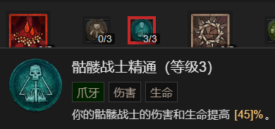 最后使用2个技能点将诅咒技能中的骷髅法师精通点满。