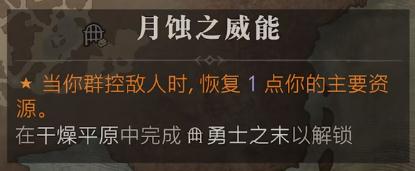 月蚀之威能:当你群控敌人时,恢复1点你的主要资源。