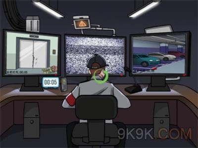 3.当保安离开位置后点击桌上的回放按钮,再点击3个监控画面会出现不同的东西。