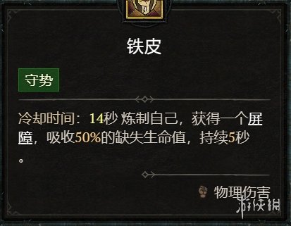 5、铁皮获取50%生命值的屏障,持续5秒,冷却14秒,仅限野蛮人。