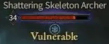 如果怪物被易伤了,它的血条会变成紫色。如果玩家被怪物攻击触发了易伤,血球UI上会出现紫色裂纹。