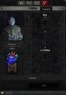 升级首饰(项链、戒指)可以增强他们的属性。 虽然您可以升级普通和魔法装备,但不推荐这样做。 最好等到你拥有稀有和传奇/暗金首饰后再升级,这样可以节约材料。稀有品质的首饰可以升级3次,传奇/暗金品质的首饰可以升级4次,升级传奇/暗金首饰需要特殊材料。