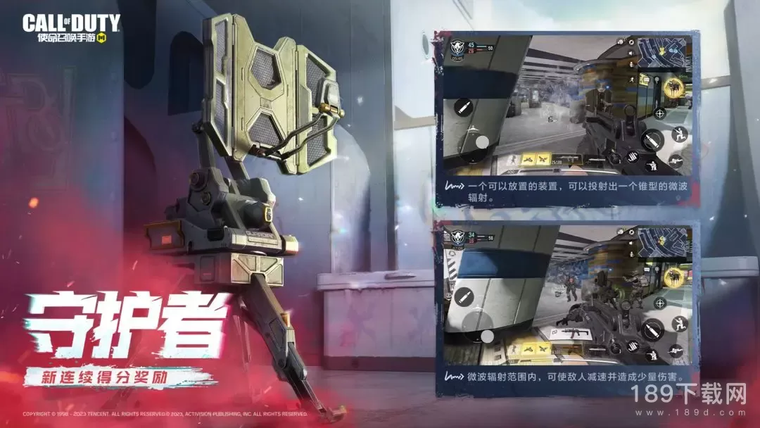 新版本上线后,新连续得分奖励:守护者也将与战士们见面。它是一个可以放置的装置。放置后,守护者能投射出一个锥形的微波辐射。在微波辐射范围内,敌人会减速并受到少量伤害。