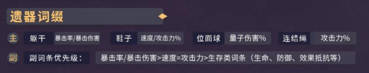 副词条优先为暴击或者爆伤,其次速度与攻击力,最后才选择生命、防御。