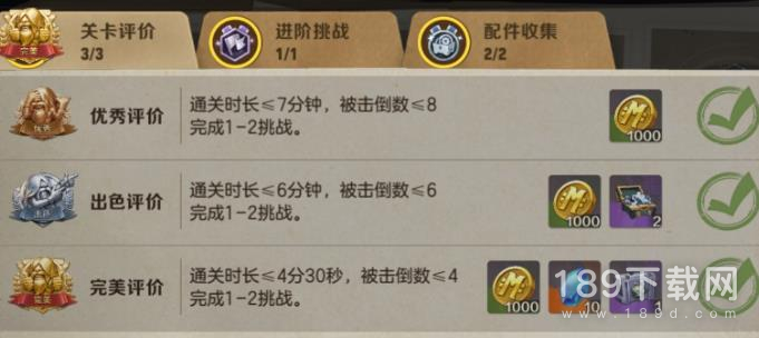 3、关卡评价共三档,优秀、出色、完美,用时越短、倒地越少评价越高,通关后达到出色评价可解锁下一关。