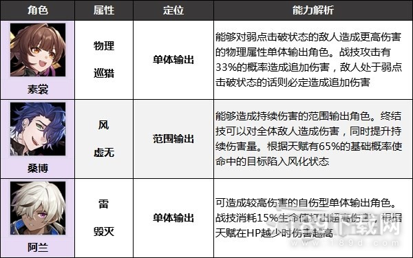 输出角色:容易打出伤害。比起在特定条件下或需要花费更多时间才能打出伤害的角色,更容易打出伤害的角色评级会比较靠前