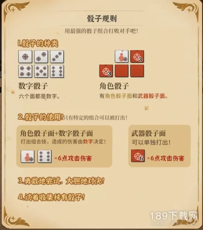 角色骰子皆是输出类型,必须搭配数字骰子使用。视角色骰子会打出不同的伤害值,如果不确定的话可以放上去挨个查看伤害以打出最优伤害。