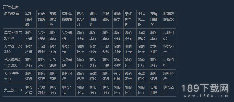 记录了所有人对话题的兴趣,分别为兴致缺缺,聊的还行,志趣相投。其中聊的还行中会有比较喜欢的会用聊得不错代替。