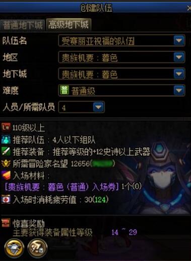 组建高级地下城队伍后,可选择普通、冒险、勇士级难度。