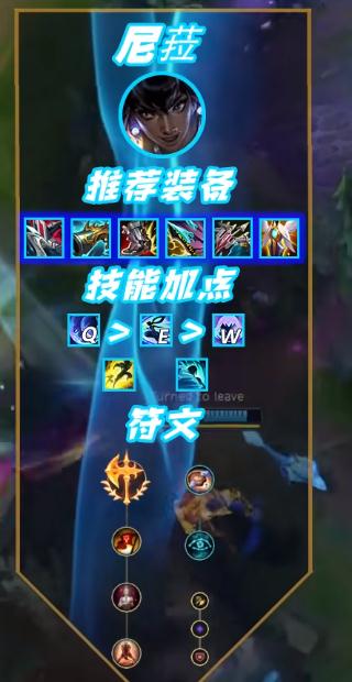 打法思路主要就是近身肉搏冲阵,尽可能避免和长手AD对着消耗,在找到机会猪妹开团后尼菈可以位移进场,两人集火快速打出E冻结,很容易打赢小规模团战。