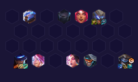 成员:终极伊泽瑞尔、盖伦、崔斯特、潘森、慎、妮莎、伊泽瑞尔、辛德拉、希维尔