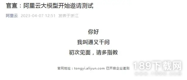 4月7日,阿里云在其官方公众号中宣布,大模型“通义千问”开始邀请测试。