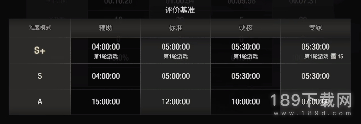1、游戏中专家S+的条件是:玩家需要在一周目中,五个半小时之内完成通关,存档次数不能多于15次。并没有武器使用限制,因此可以使用角色饰品和奖励武器。用铁甲艾什莉和汤姆逊,在时间上还是挺宽裕的。