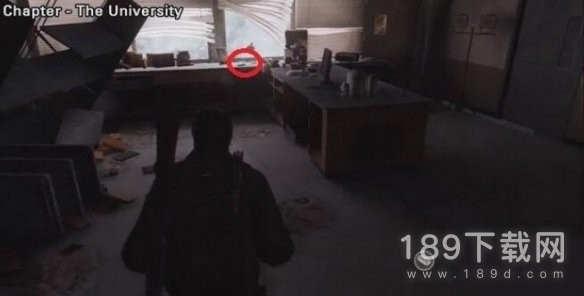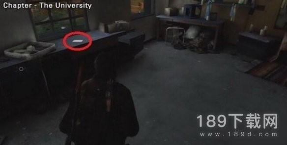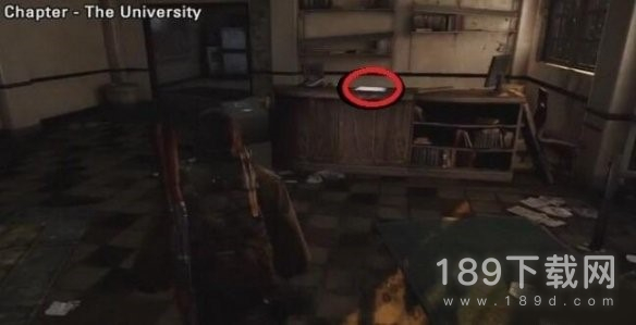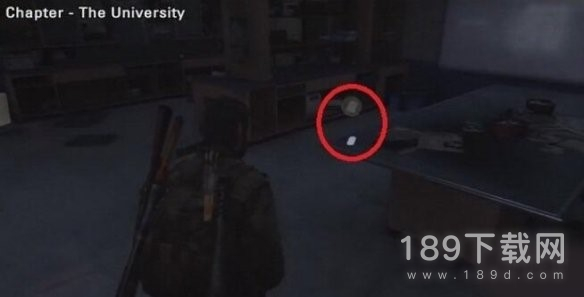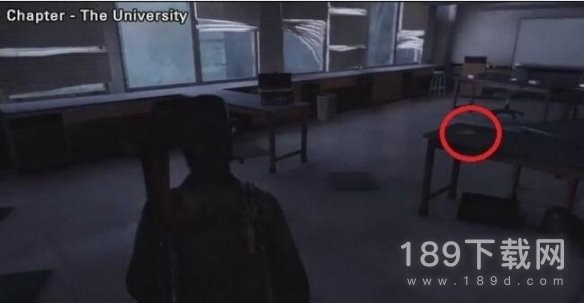 推垃圾箱登上卡车来到大学的实验楼2层,深处有一个隐藏门,撬开后最近的桌子上。