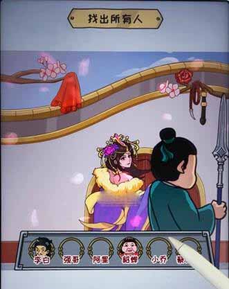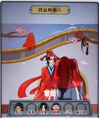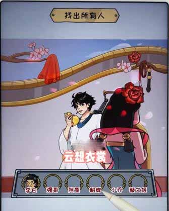 4、点击左侧人物到黑色长发古代女,将树枝上的红盖头给她走一个,门边人物衬衫男就会变为阿星。
