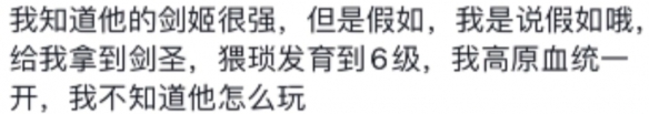 2.而最近就有玩家发布了一段我知道对面剑姬很强,但是假如,我是说假如哦,给我拿到剑圣,猥琐发育到6级,我高原血统一开,我不知道他怎么玩"的话。