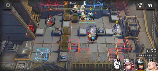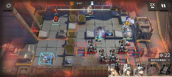 2.开局部署顺序为桃金娘↓棘刺←山↓德克萨斯↑闪灵↓,让德克萨斯把第一次城防炮吃掉。