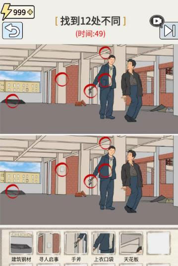 1,在下图中可以看到狂膘的一个场景图,玩家需要在俩个相同的场景图中找出不相像的地方,那么下面就是需要玩家仔细的观察才行。