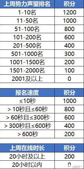 【六合青龙】玩法与【天江之战】玩法将共用一套报名排队规则:玩家根据自己上周势力声望排名、活动报名速度以及上周活跃程度获得对应积分,三项积分总和越高,队列名次越靠前!!