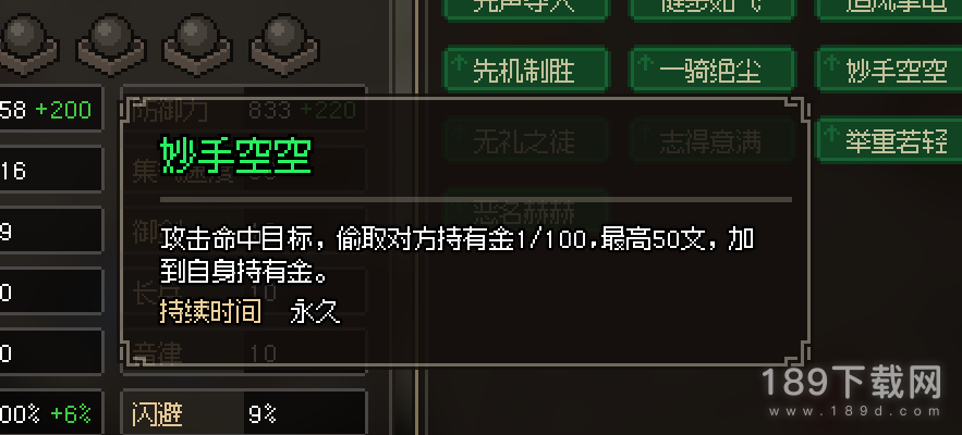 1:进了燕子坞恶名必赫赫(每次使用暗取技能仁德-2)
