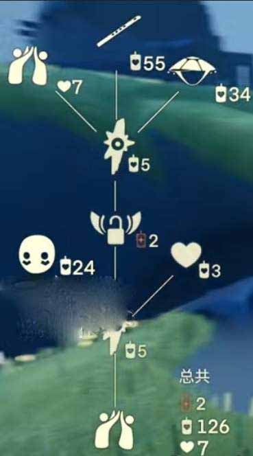 2、这个先祖的兑换列表可以参考下图所示,兑换所有的物品需要126个蜡烛、2个升华蜡烛和7个爱心;