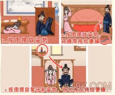 3.按图摆放凳子和姿势,将化妆品给曹操就可以了。