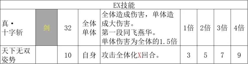 天下无双姿势,是剑士独有的EX技能,在丙午地区的雷剑将祭坛解锁。