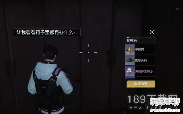 2,当玩家找到了这个宝箱所在的位置,那么移动到宝箱周围,并将这个军械箱打开,打开后可以获得粗制火药x1、子弹壳x40、小袋银币x2、海岛探索积分x1,这边就是找到了这个补给箱子。