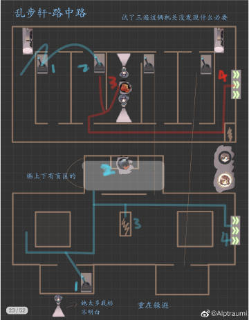 图中路线为个人推荐路线,尽量做到躲避灯光的位置,但毕竟会动还是要各位夫人还是要注意下灯啦over