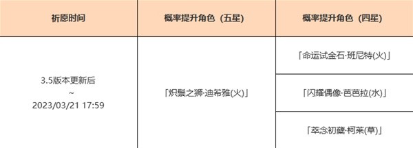 活动结束后,5星角色「炽鬃之狮·迪希雅(火)」将在下一版本进入「奔行世间」常驻祈愿。