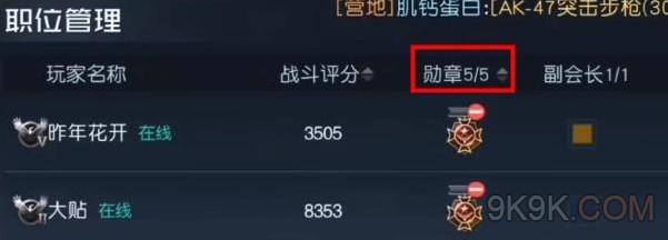 1.黎明觉醒营地勋章只有5个,每个营地里只有5个人可以获得营地勋章的。