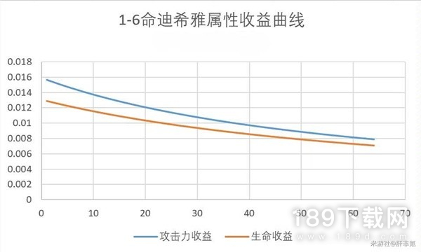 从收益曲线我们可以看出,同词条数下攻击力词条是碾压生命值词条的。所以迪希雅0命时是完全不需要主动去加生命值的。推荐优先选择攻击力沙,当然杯子也是直接无脑选择火伤杯。