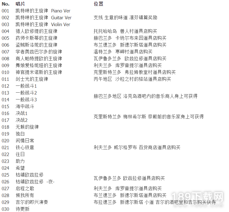 在完成帕特提欧的专属支线“生意的味道 凛芬镇篇”之后,就可以在各个地方获得唱片。获得全30张之后解锁奖杯“唱片收藏家”。