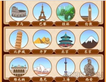 2.按照上面图片就可以顺利通关城市的标志了,就是将各个城市的景点,物品跟城市配对。