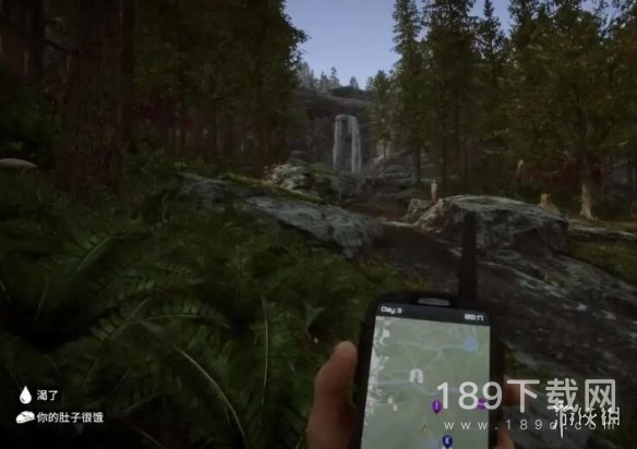 3、来到女野人可能刷新的第1个位置,如图所示的瀑布旁边,如果她不在,我们继续去下一个位置。
