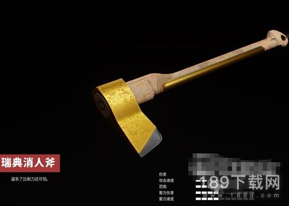 游戏初期,坠毁醒来后自动获得武器“瑞典消人斧”。