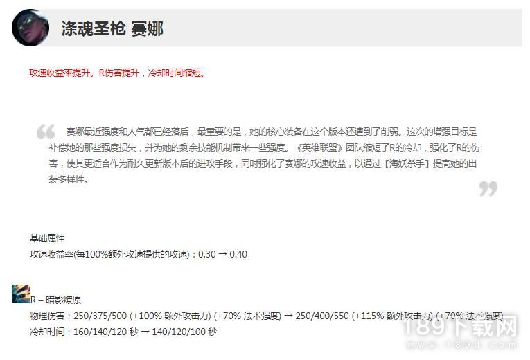 攻速收益率提升。R伤害提升,冷却时间缩短。