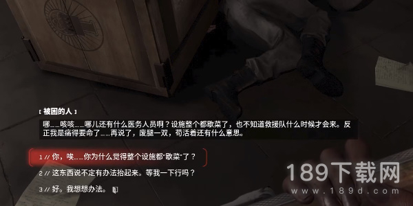 2、和他对话后,【设施整个都歇菜了:也不知道救援队什么时候扌会来。反正我是痛得要命了.....再说了,废腿一双,苟活着还有什么意思。】
