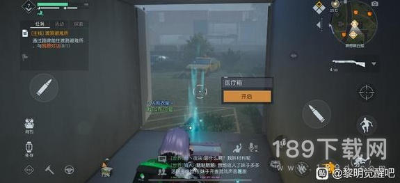刚刚黄色帐篷的路对面,有一个厢式货车。利用厢式货车旁的木箱爬到楼顶即可找到箱子