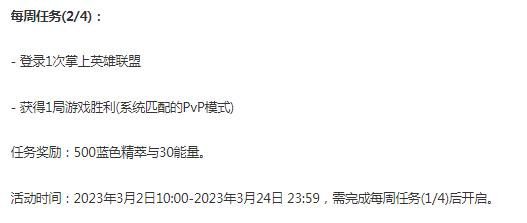 第二周活动时间:2023年3月2日10:00-2023年3月24日 23:59,需完成每周任务(1/4)后开启。