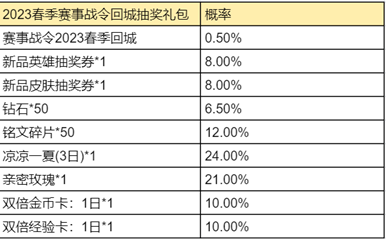 2023春季赛事战令回城抽奖礼包抽奖概率,125次必得赛事战令2023春季回城