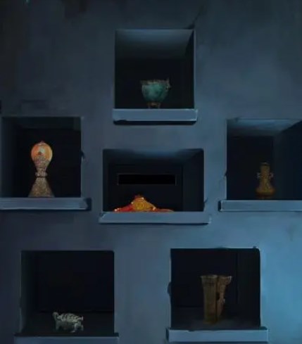 根据图案连线的形状得知第二个房间开锁答案如下,打开得到【供香、圆形佛头饰品】,将供香插到祭台的炉里